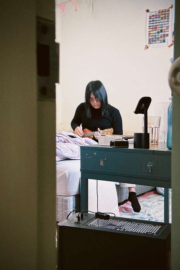 在從小長大的板橋,跟我板橋家一樣的老公寓,走下來一樣是個市場,哦那邊真的好棒,我愛死他家的暖色調了。上揚的房間極具個人色彩。暖暖的黃光加上滿牆的照片與宣傳海報紀錄他走過的足跡,相反的我總是把房間弄的很極簡,不喜歡放上看的出來房間主人是誰的擺飾,他的房間給人感覺就像他本人一樣溫暖。喝了點酒,吃了好吃的湯包,在聊天中慢慢地睡著,是幸福的一天結局。