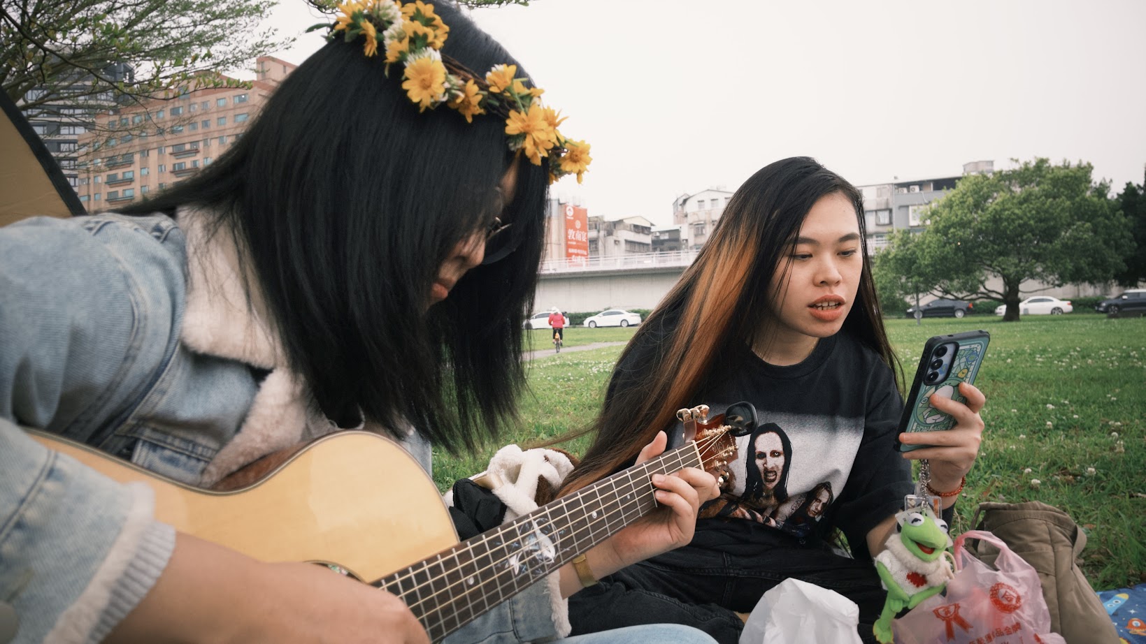 野餐遇到了歪歪跟奕祥,holy他們簡直就像神仙眷侶,一個彈吉他一個唱歌,也太合拍。奕祥彈吉他的風格很好聽,喜歡他們聽歌的品味。歪歪是吃五辛而不吃蛋奶的素食者,是出於對動物的關懷,上一次認識的以色列朋朋也是這樣的理由,很能理解,在跟Simon聊該寫什麼給十年後的自己時,我們巧合地給出類似的答案,突如其來的被同理有點感動。Ariel很有氣質,她帶了一本我估計要三年才會看完的哲學書,Michael帶了吊床來,何其幸運剛好有兩棵樹可以吊起吊床,他甚至編了花圈哦嗚真的好可愛,希望他在我們這過得自在快樂;安安Q跟Lia也是對很仙的情侶,安安Q還會開跟69有關的玩笑,哦我突然覺得很青春,那是在20來幾就會擔心不合時宜的玩笑。Lia很親切,摔倒在她身上的時候我很擔心她會不高興,但看到她開懷大笑的時候我整個放鬆起來,還有狗肉跟Kova跟上揚,謝謝你們經過我的人生。